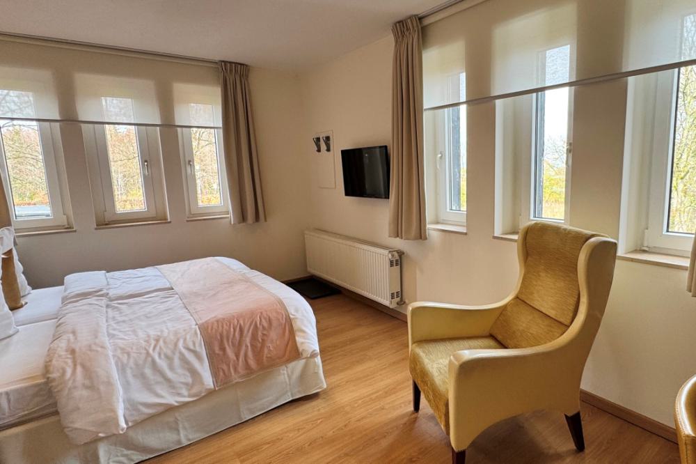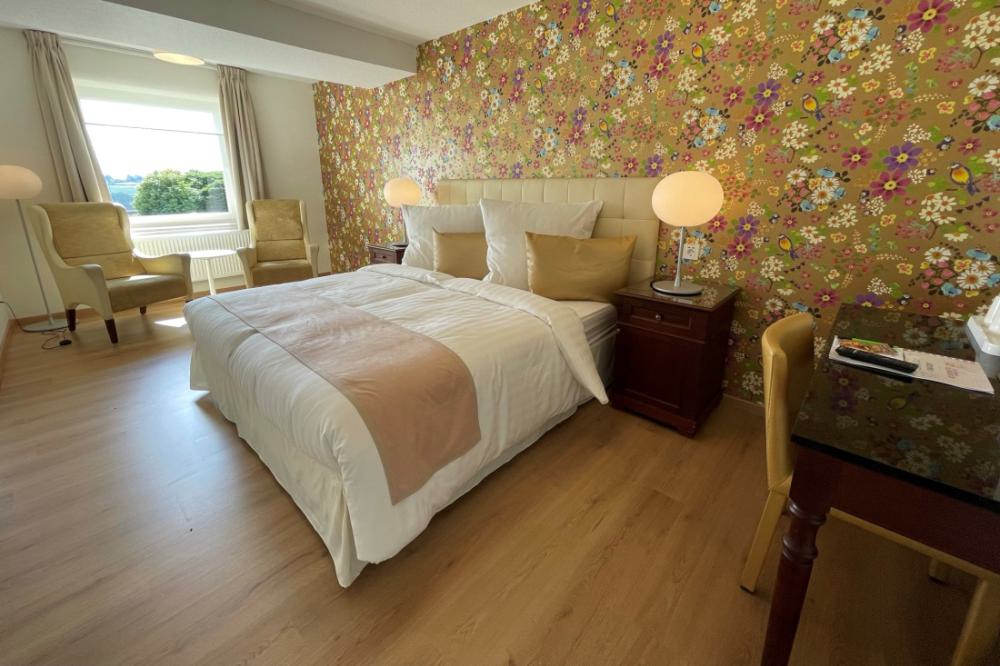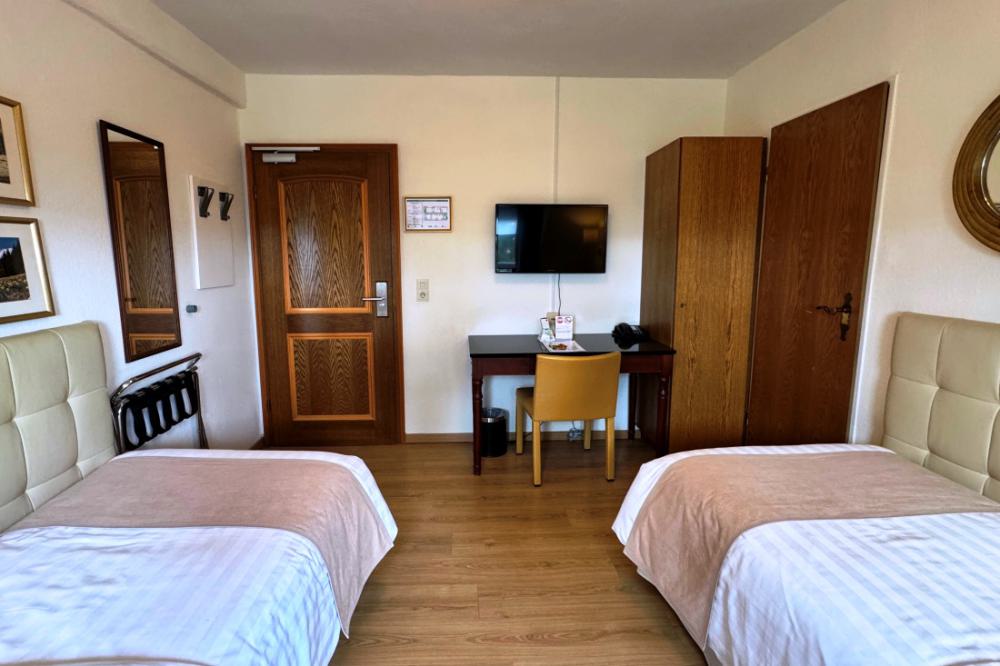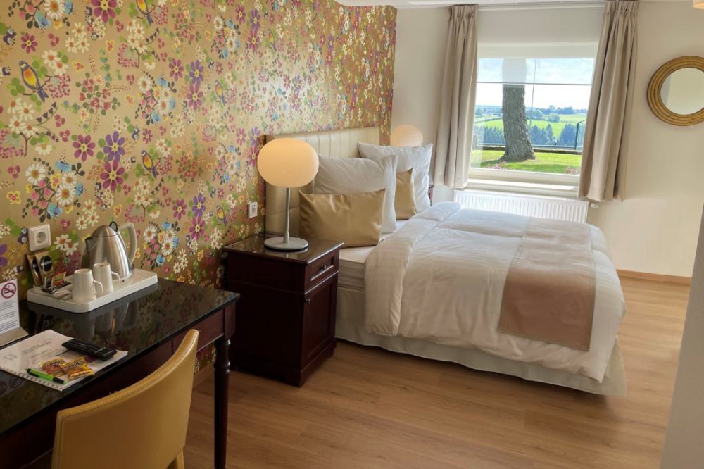 The comfort plus double rooms are comparable to the comfort rooms, but are slightly more spacious and are also equipped with a comfortable sofa. All comfort plus rooms have recently been completely renovated, are located on the ground floor and first floor and have a private bathroom with shower and toilet. The rooms are equipped with comfortable box-spring beds, a writing table, two comfortable armchairs, a sofa and coffee and tea in the room. The comfort plus double rooms have a wonderful view over the valley.