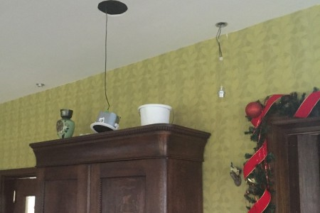 Toen eind oktober de regen weer naar binnen liep was de maat vol. De regen had nu weer een andere weg gevonden en liep nu via een schroef in het gipsplafond zo in een oude vaas die op de antieke kast van Auke zijn ouders stond. Gelukkig dat die vaas er stond anders was die oude kast nat geworden.